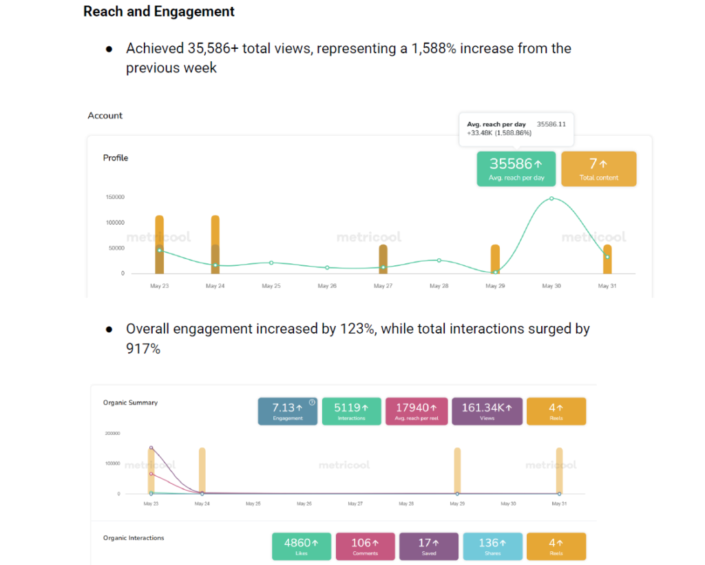 While engagement typically improves within 2-3 weeks, measurable business impact—like lead generation and brand recall—usually becomes evident by month two. We track conversion metrics, not vanity numbers. Our Ge Gard Wellness client saw 16% brand recall lift in just 30 days, and Beas Cricket Bats experienced sales growth alongside viral content within their first campaign.